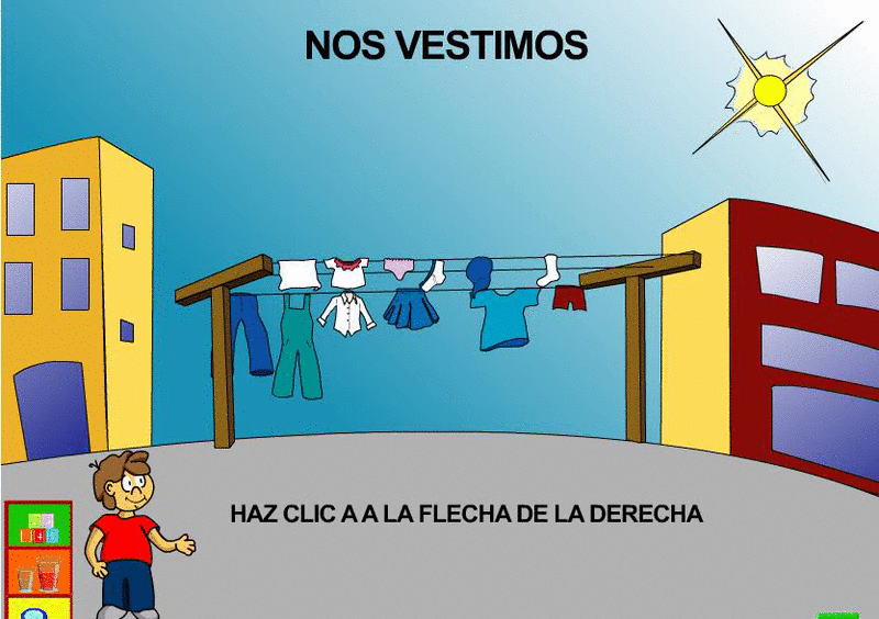 Con este simpático personaje vamos a aprender como se visten los bebes, las mujeres, los hombres. Aprenderemos a vestirnos pasando por los diferentes juegos que se proponen.